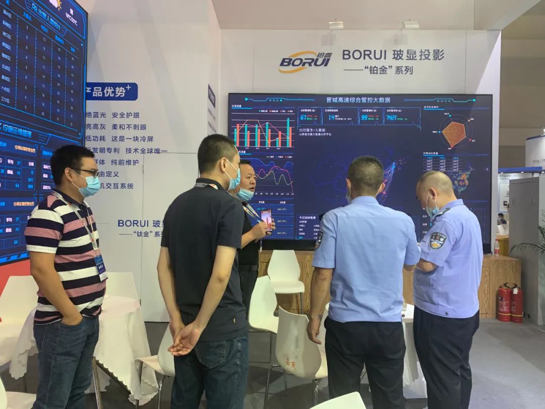 重慶市公安局科信處的領(lǐng)導(dǎo)也蒞臨鉑睿光電展位進行參觀指導(dǎo),技術(shù)人員為他們就不同系列的每塊屏都做了詳盡的介紹。
