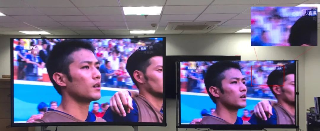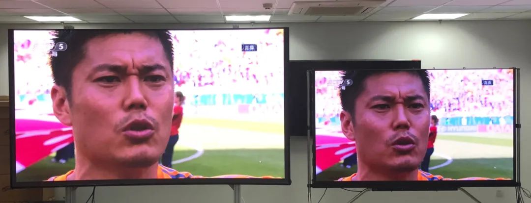 左邊為BORUI玻顯投影,右邊為傳統(tǒng)小間距LED P1.25屏